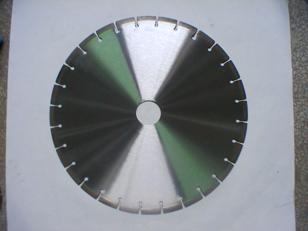高频焊接金刚石锯片产品说明:简单的说就是把加工好的金刚石刀头通过高频感应加热设备焊接在板材上,起到切割和打磨的功效。下面就金刚石刀头和板材做具体的解说。 金刚石刀头 【Diamond Segments】 根据加工材料的不同要求,刀头的形状可以是多变的,这取决于石墨磨具,不管什么形状的刀头只要开同形状的石墨磨具就能生产出所需要的金刚石刀头。 1. 金刚石刀头:用,铁粉,铜粉,钴,等其他一些粉料加金刚石【人造钻石】通过混合比列经过冷压成型,放在石墨里通过加温加压成型,出来以后就成为金刚石刀头。 2. 板材:所谓的板材就是用钢材做成的,有45钢50钢,65锰钢,还有一些其他的钢材,目前国内所用的都是65锰钢,经过冲压成圆形,做出各种形状的水槽,称为基体。 根据切割对象的不一样,刀头的成分配比也一样,金刚石的粗细也不一样。 我所指的切割对象:大理石,,花岗岩,,砂岩,混凝土,水晶玛瑙,等其中又根据硬度的不一样又分很多种石材。 3. 产品规格从直径300mm-2000mm,孔径从25mm,30mm,50mm.100mm等。 4. 针对材质:大理石,,花岗岩,,砂岩,混凝土马路,水晶玛瑙,沥青马路,钢精混凝土等。
