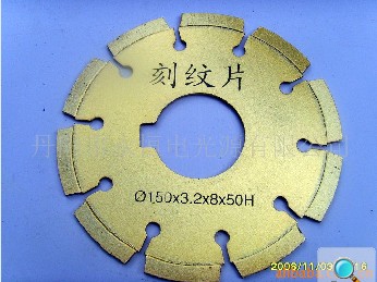 相关描述:高频焊接金刚石锯片产品说明:简单的说就是把加工好的金刚石刀头通过高频感应加热设备焊接在板材上,起到切割和打磨的功效。下面就金刚石刀头和板材做具体的解说。 金刚石刀头 【Diamond Segments】 根据加工材料的不同要求,刀头的形状可以是多变的,这取决于石墨磨具,不管什么形状的刀头只要开同形状的石墨磨具就能生产出所需要的金刚石刀头。 1. 金刚石刀头:用,铁粉,铜粉,钴,等其他一些粉料加金刚石【人造钻石】通过混合比列经过冷压成型,放在石墨里通过加温加压成型,出来以后就成为金刚石刀头。 2. 板材:所谓的板材就是用钢材做成的,有45钢50钢,65锰钢,还有一些其他的钢材,目前国内所用的都是65锰钢,经过冲压成圆形,做出各种形状的水槽,称为基体。 根据切割对象的不一样,刀头的成分配比也一样,金刚石的粗细也不一样。 我所指的切割对象:大理石,,花岗岩,,砂岩,混凝土,水晶玛瑙,等其中又根据硬度的不一样又分很多种石材。 3. 产品规格从直径300mm-2000mm,孔径从25mm,30mm,50mm.100mm等。 4. 针对材质:大理石,,花岗岩,,砂岩,混凝土马路,水晶玛瑙,沥青马路,钢精混凝土等。 | |