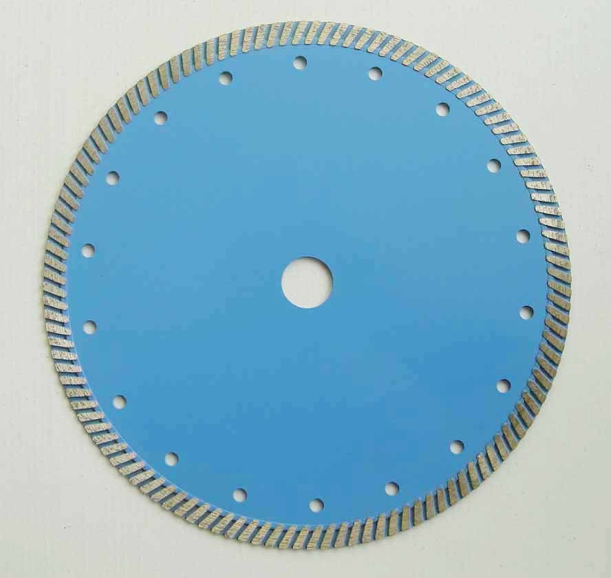 冷压金刚石锯片产品说明:规格从直径105mm-400mm,孔径:16mm .22.23mm 25.4mm 30mm 等根据客人的要求定制,采用冷压烧结而成,又分干片,湿片,涡轮片。湿片必须加水切割保证切割效果,干片切割速度快适合干,湿两种切割方法,涡轮型结合干湿片的两项优势,提高切割速度和使用寿命。 针对材质:花岗岩,大理石,混凝土,陶瓷等。